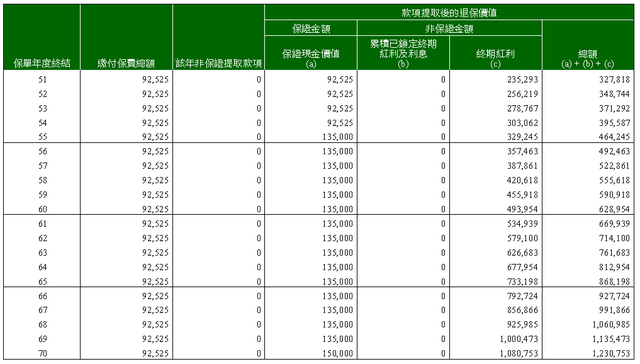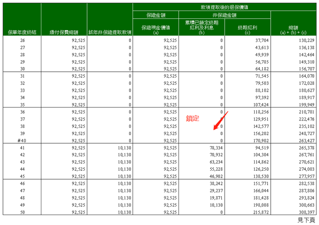 5. 预期在第20年回本,并保证在第26年后保费回本。