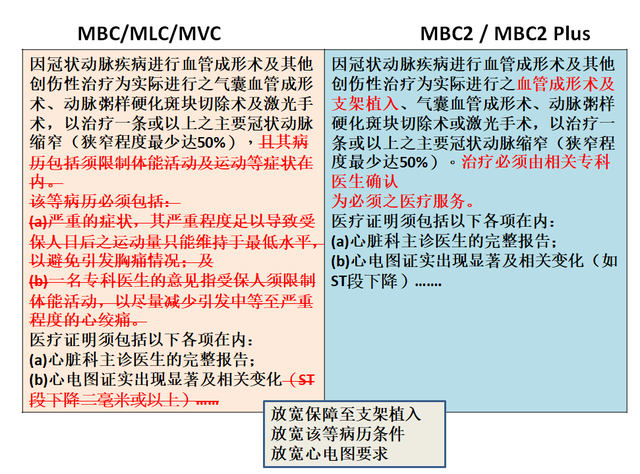 1)如果在推广期间成功投保MBC2或MBC2 Plus,如果就同一种重大疾病,MBC2 / MBC2 Plus的定义相对于指定重大疾病产品的定义对被保险人更有利,那么公司将采用MBC2 / MBC2 Plus的疾病定义处理指定重大疾病产品的索赔。2)此条款适用于现有重大疾病保单的首次重大疾病赔偿/因冠状动脉疾病进行血管成形术及其他创伤性治疗。3)不适用范围:其他非指定早期重大疾病/儿童疾病/后续的重大疾病(例如:持续守护保障)。举例:因冠状动脉疾病进行血管成形术及其他创伤性治疗。