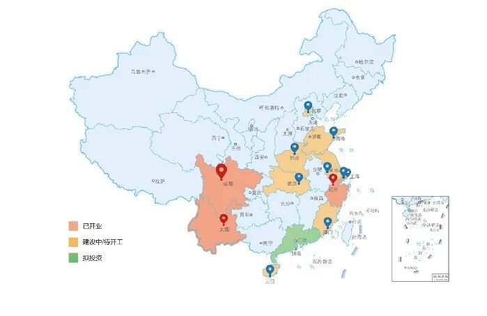 目前已开业项目3个,分别为成都、大理、杭州社区;已落地项目9个,分别为上海崇明、上海普陀、厦门、南京、武汉、青岛、郑州、北京、三亚项目。广州等意向性项目正在积极推进中。